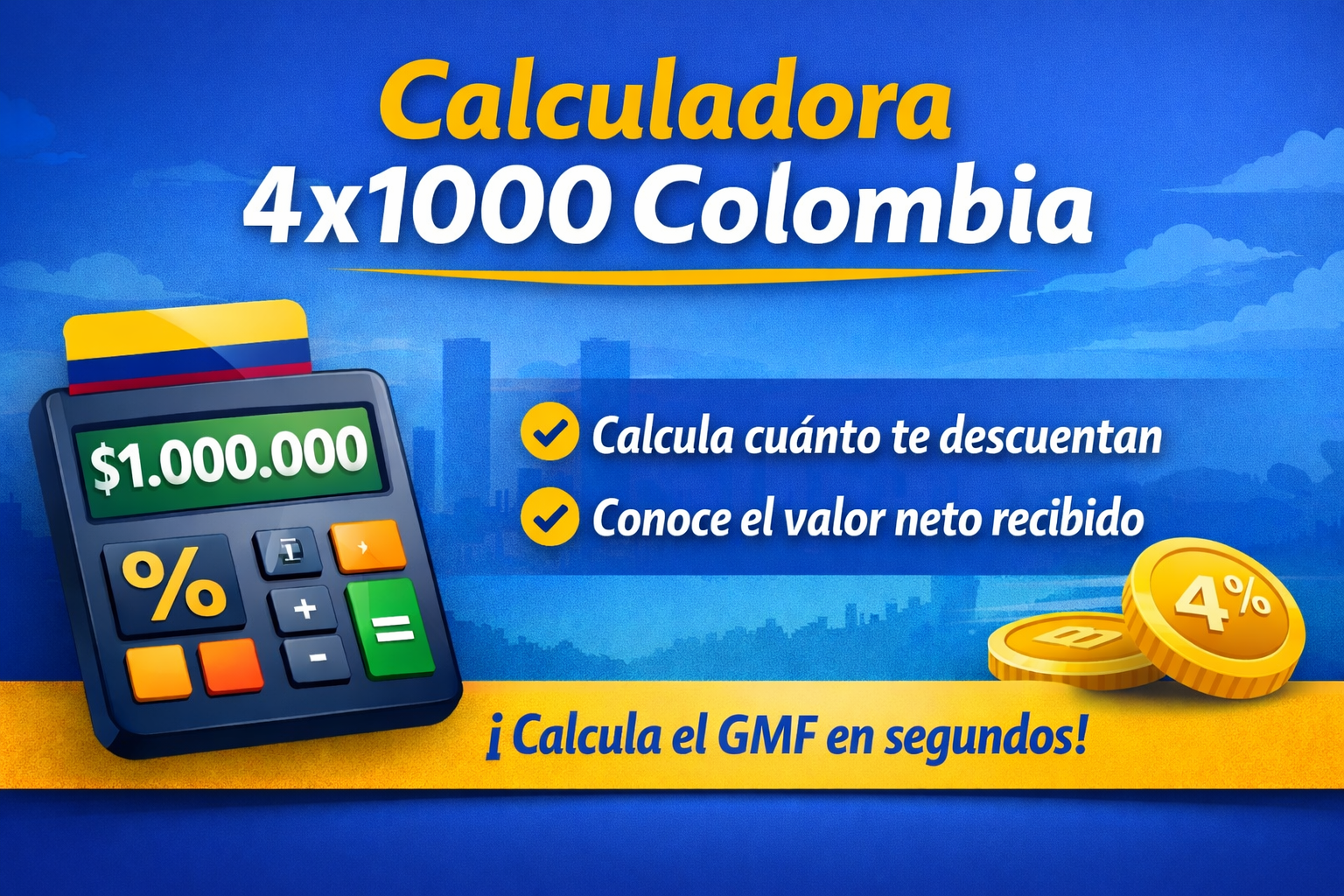 Si quieres saber cuánto te cobra el 4x1000 en una transferencia, retiro o movimiento financiero, aquí tienes una guía clara y una calculadora práctica para estimarlo.